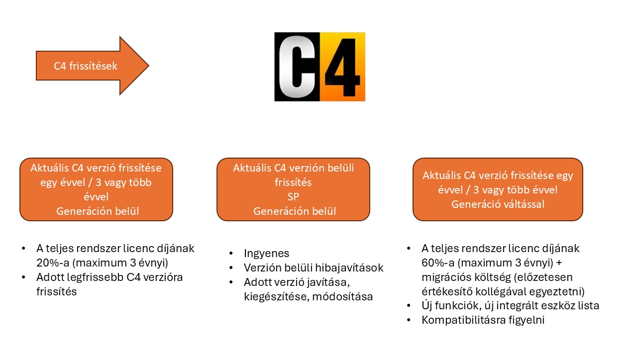 C4 verzió frissítés esetén, figyelembe kell venni azt, hogy a C4 szoftvert mikor vásároltuk: