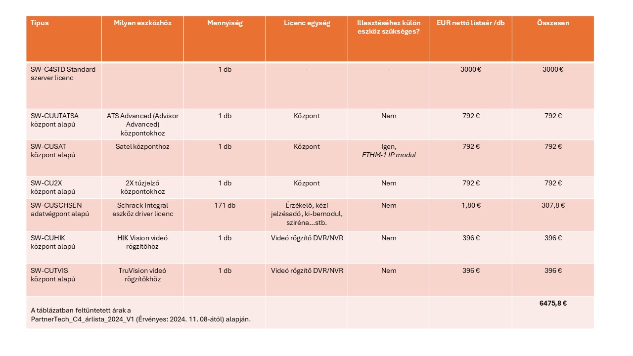 V2025-ös verzióra frissítés esetén: egy évnyi frissítéssel van lehetőség, mely a teljes licenc díj 20%-a.
