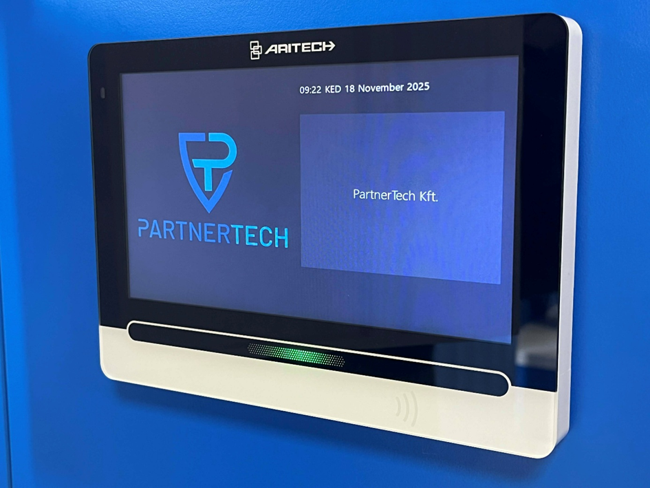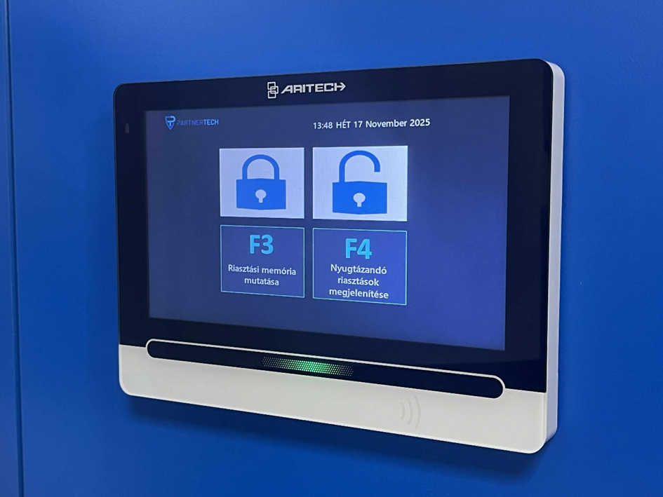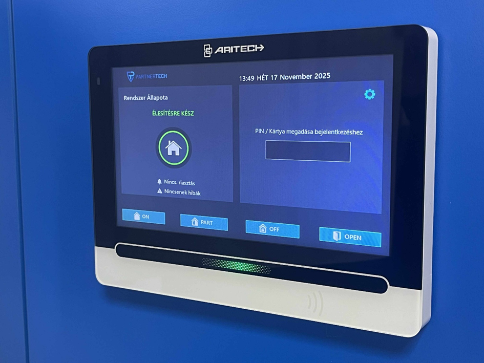 Logó: a bal felső sarokban látható. Alapértelmezetten Aritech logó.